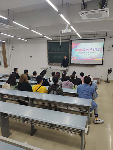 在一号教学楼1314号大教室开展以“迎接建党一百年,做合格共青团员”为主题的团课,本次团课由2020级2班团支书李浩亦主讲,2020级应用心理学2班全体新生共同聆听。