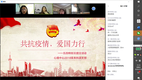 本科2018级团支部开展“共抗疫情,爱国力行”五四特别云团日活动。本次团日活动由二班团支书杨涵玉主持,2018级一班和二班的全体团员通过瞩目app线上参加。