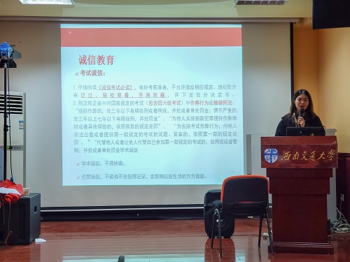最后,王老师将《西南交通大学本科生诚信考试承诺书》发放给大家,让大家认真学习后做出承诺,签字为证。