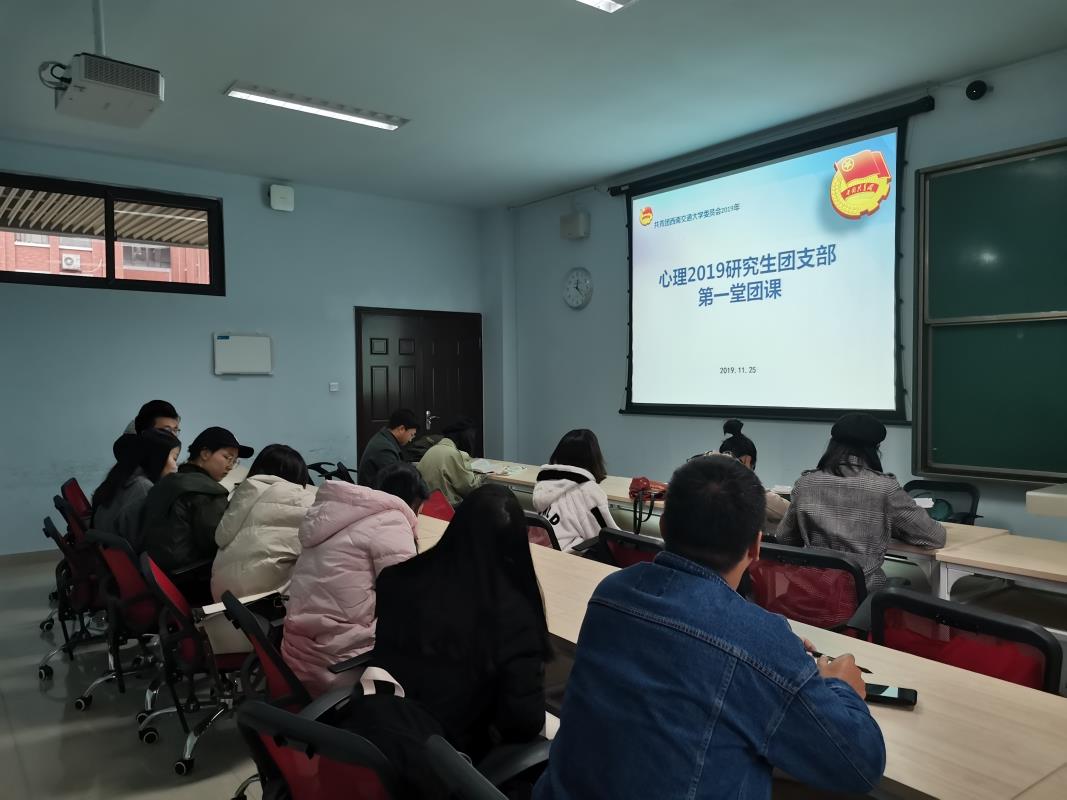 为帮助同学深刻理解共青团的意义和树立正确的价值观,11月25日下午,四川省西南交通大学心理澳门六合彩开奖直播 2019级研究生团支部在X9237开展了第一堂团课活动,团课由支部书记陈瑶主讲。