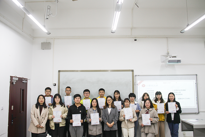 成员颁发聘任证书。仪式结束后,樊老师就日后工作流程、相关要求、注意事项等对学生骨干们进行了培训并现场答疑解惑。
