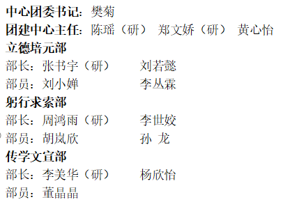 共包含立德培元部、躬行求索部、传学文宣部三个部门。