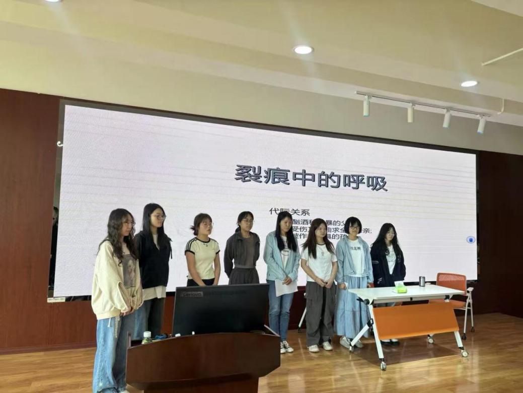 在实践环节,同学们分成三个小组,围绕代际传递、理想化崩塌、同伴关系主题,利用 AI 工具编写心理剧剧本,并进行现场演绎。每个小组成员都积极参与,从剧本构思到角色扮演,再到舞台呈现,充分展现了同学们的创造力和团队协作能力。通过这一过程,同学们不仅加深了对心理剧理论的理解,还学会了如何将 AI 技术融入心理剧创作,为心理辅导工作提供了新的思路和方法。