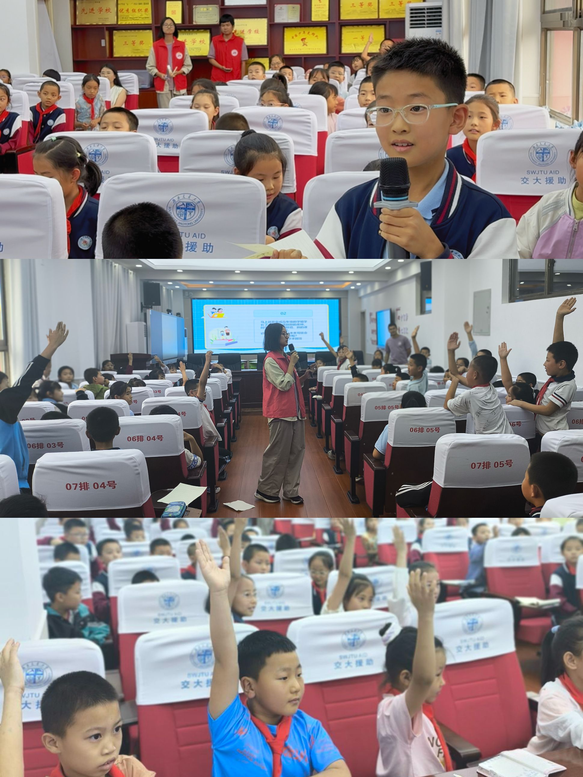 小学后,迅速投入工作,为三、四年级四个班的 140 余名儿童精心筹备并开展了一系列心理健康讲座。此次讲座围绕“搭建自信金字塔” 和 “坚强意志,面对挫折” 两大主题展开。实践队员们充分结合该年龄段儿童的心理特征,巧妙设计课堂环节。通过充满趣味的 “抓乌龟” 小游戏,瞬间吸引了同学们的注意力,活跃了课堂气氛。随后,又借助 “掌声响起来” 和 “鸡蛋变超人” 两个小游戏,自然流畅地引入自信培养和应对挫折的课堂主题。针对当前年龄段儿童常见的心理问题,实践队员们从问题识别、思维模式塑造到解决方法传授,进行了全面且细致的培训讲解。课堂上,同学们积极踊跃参与互动,气氛热烈。