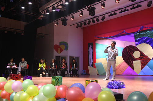女生就坐之后轮到男生出场,每个男生都要经过“第一印象初审核”、“细心观察之再判断”、“真实了解之再评价”三个部分,期间会播放两段关于男生的视频展示男生在朋友眼中和在生活中的状态。首先出场的男生是来自艺传学院的段志龙,他通过一首《真的受伤了》上台,获得了不错的成绩,后面的两段视频让现场的每一位看到了他可爱的一面,逗得现场笑声一片。二号李亚东,被笑称为“哈尼族小王子”,来自机械学院,他一上场就不忘向现场的同学们介绍他的家乡并期待大家光临。接下来是唯一一位大二的选手,交通运输学院的何健,他的一段热舞将现场的气氛引向一段高潮,随后的钢管舞更是叫现场的同学们尖叫声不断,通过冯缙老师的“指点”,他的情景剧表演与场上一位女生角色互换让同学们爆笑不止,让现场的每一位留下了深刻的印象。来自机械学院的李畅也通过率真的表现让同学们认识了他。最后一位通过吉他弹唱出场的公管学院的梁宁,赢得了一片喝彩,而后的情景剧表演也是展现了不错的一面。五位男生表演完之后,激动人心的投票环节开始了,30位大众评审一一上台投票,再综合现场观众利用人人墙投票的结果,最终六号女生朴金超和三号男生何健获得了“人气之星”的称号,而三号男生何健又和三号女生徐璐搭档获得了“最佳搭档”的称号,最后心理澳门六合彩开奖直播