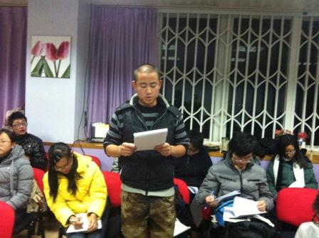 最后,大会进入自由讨论发言阶段。各年级学生党员,入党积极分子代表进行了发言。11级丁武同志围绕“是什么”、“为什么”、“怎么样”来谈了对十八大精神的理解;11级陈鋆同志围绕十八大精神谈到我们当代大学生的学习氛围与学习劲头,号召大家以更加饱满的状态投入到学习当中去;10级陆艳红同志从十八大报告中的党所面临的“危险”谈到了危机意识,即作为一名当代大学生面临社会考验应所具备的危机意识,号召大家努力提升自身实力;09级姜睿同志根据十八大所提出的“以人为本”、“务实精神”等谈到了自身家乡的发展,鼓励大家真抓实干,促进自身发展。