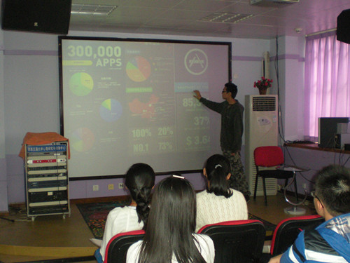 他将讲解分为两个部分,第一部分以宣传部工作所需为主,形象生动的讲解了喷绘展板、绘制海报等的基本要求。讲解喷绘所需的CMYK格式图片时,采用对比的方式,将其与普通RGB格式分别开来;讲解图层时,将每个图层比喻为一层塑料膜,将这个抽象的概念与生活中的物体相对应,使学员们很快明白了它的要点;他还十分细心的提示了很多工作过程中需要注意的地方......第二部分以兴趣拓展为主,他介绍了一些使用技巧,并现场展示了一个修图过程,为学员们剖出photoshop这个丰富世界的一角。最后,他布置了小练习,用以检验学员们的学习成果。