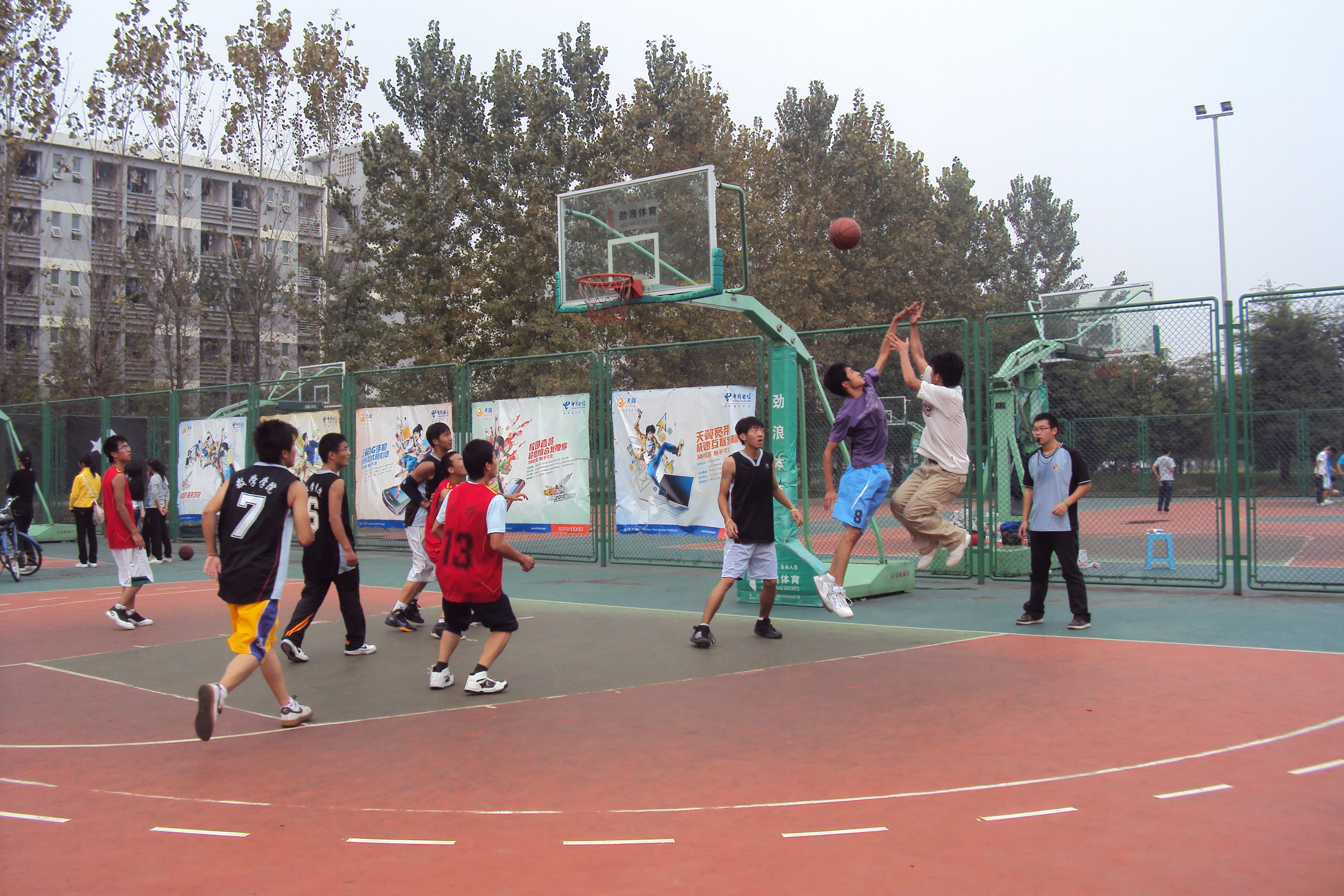 比赛开始了,队员们在赛场上尽情的挥洒着青春的汗水,即使是你争我夺得的激烈,也丝毫不忘友谊第一的最高原则。就算是带伤上场的罗欢欢同学,也和其他队员一样表现得骁勇非凡。看他们严谨的防守和配合,巧妙地传球,准确迅速的断球上篮,出人意料的上篮得分,无不彰显出每位同学的朝气和热情。场边那一阵阵发自内心的加油声、呐喊声,也在这凉爽的秋风中汇成了一曲团结和睦的乐章。