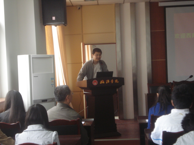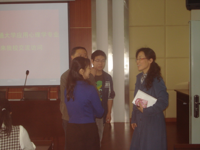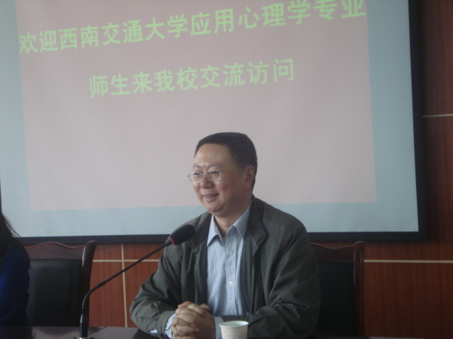 西南科大法学院应用心理学系主任辛勇教授首先发言,他说,交大心理学专业从四川省心理学领域的后起之秀到如今学术领头人的迅速崛起,表明其发展的优良态势,值得科大心理学专业的借鉴和学习。接着辛教授向我校师生简要介绍了西南科大应用心理学专业的开展状况,自2006年招生开始,每年约招收60名新生,如今西南科大应用心理学系已有240多名学生。西南科大应用心理学系隶属法学院,将心理学与法学紧密结合,突出犯罪心理学研究优势,积极与绵阳市警察局、监狱等展开合作,进行警察心理干预,研究犯罪心理学。学院还建立了心理学实验基地,与绵阳市公检法系统,以及各中小学展开合作。进一步建立心理学研究平台,争取设立硕士点,促进心理学的学科发展是专业未来的发展方向。