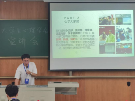 9月23日晚,大学生心理学会招新宣讲活动以及面试在西南交通大学犀浦校区四教X4155举办。准备加入心学的同学们在晚自习、上课结束后纷纷抵达现场。心理学会的干部们也都到达了现场,热情的给大家介绍学会整体和各部门的情况。
