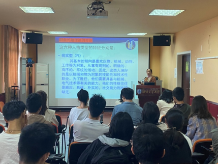 张老师以“职业选择中遇到的问题?”为导入,与同学们一起交流了在职业选择中遇到的问题与困惑,随后张老师通过霍兰德职业能力测试带领同学们探索自己的职业兴趣,并分享了就业、工作过程中可能会遇到的问题、难点。