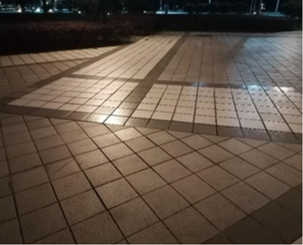 安全方面:校园露天瓷砖地面雨天湿滑,骑车同学经过易滑倒造成人身损伤;且路面普遍存在由砖块缺少而导致凹凸不平的现象,一方面影响美观一方面也威胁骑出行的同学的安全。