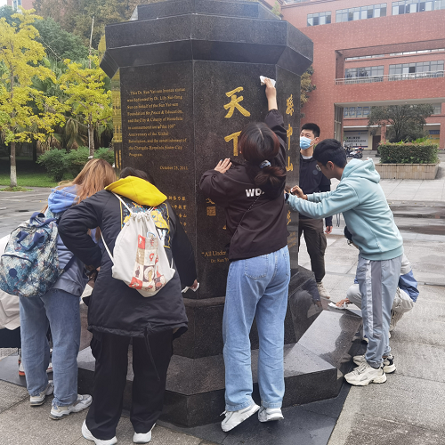 为了响应西南交通大学青年志愿者联合会号召,维护清洁卫生的校园环境,西南交通大学心理研究与咨询澳门六合彩开奖直播 青年志愿者协会于10月30日开展了雕塑清洁志愿活动,对四号教学楼与五号教学楼之间的严恺先生纪念像和二号教学楼与五号教学楼之间的孙中山先生纪念像进行了清洁。