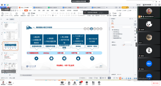 班会上,樊菊老师对当前毕业工作相关安排进行了详细的介绍,着重说明了毕业总体时间安排,毕业派遣与信息校核,党团组织关系转接与就业奖励申请等毕业相关事宜,并耐心解答了同学们提出的问题。随后,老师就毕业季安全注意事项进行了强调,提醒学生们自觉遵守疫情防控要求,严格遵守校规校纪,做到安全离校,文明离校。