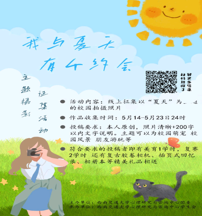 学生会举办的以“夏天”为主题的校园拍摄照片的征集活动“我与夏天有个约会”顺利举办。