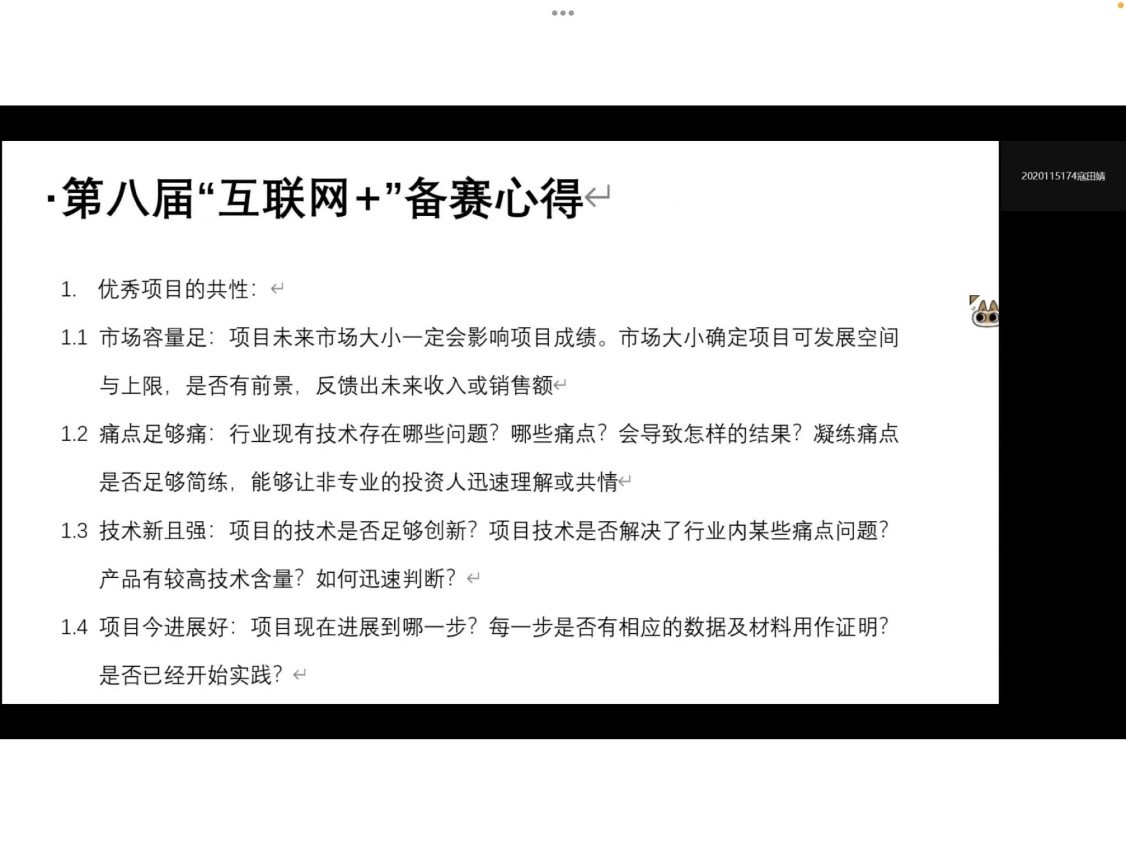 2020级获校赛金奖团队进行分享,团队成员因课程原因不能到场,细心录制了备赛心得视频,并梳理成文件,帮助学弟学妹们参赛。
