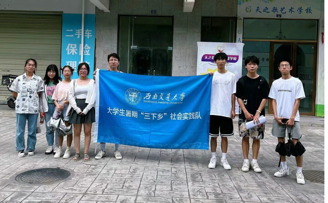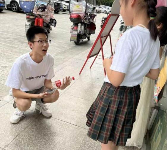 的8名2022级本科生在郫都区龙吟路与校园路开展了以“关注社会支持,助力儿童成长”为主题的2023年大学生暑期“三下乡”社会实践活动。