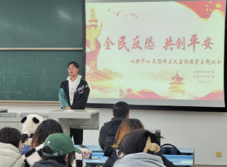 心理澳门六合彩开奖直播 2022级开展“全民反恐 共创平安”反恐怖主义宣传教育主题班会