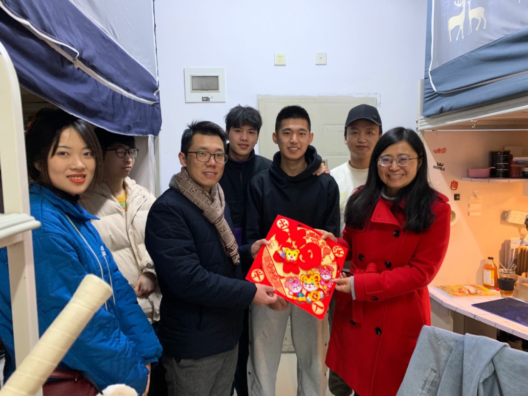 On the afternoon of December 31st, 2021, leaders from the Psychological Research and Counseling Center (PRCC), Liu Yongmei (the Secretary of the Party branch), Ke Xiaojun (the Deputy Secretary of the Party branch), and Xiong Caiyu (a counselor of students’ affairs), visited dormitories of PRCC’S freshmen to offer them care and blessings for the New Year.