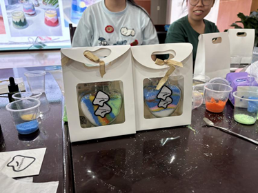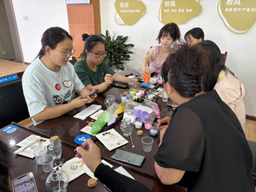 活动现场氛围热烈,欢声笑语不断,大家纷纷交流创作心得,老师们的体验分享如下。有的老师说“减压效果显著”,表示这种沉浸式创作能有效缓解教学或生活中的心理压力;有的老师说:“激发了我的创意,也疗愈了自己。”