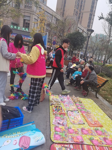 2020年11月14日上午九点,西南交通大学(以下简称西南交大)心理青协、利兹青协以及西华大学青协三个团队在学苑社区协助季柳园“青青小屋”举行了故事小屋和豌豆市集活动。