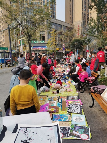 跳蚤市场上的卖品有可爱的玩偶娃娃、有趣的玩具、多彩的儿童书籍,还有小朋友们自己创作的绘画作品、拼贴画作品。西华大学青协团队负责协助办理豌豆市集活动,志愿者们协助“小小摊主”售卖爱心货品,整理摊位,并且为往来的家长和小朋友们讲解豌豆市集的公益目的。家长和小朋友们都对这一爱心公益表示支持,一位小女孩高兴地告诉志愿者:“我买到了可爱的兔子娃娃,还能帮助故事小屋买书,好开心呀!” 在豌豆市集逛累的孩子们围坐在图书借阅点,津津有味地阅读书籍,并等待后续活动的开展。