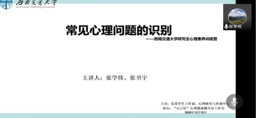 联合主办,“心之轩”心理健康辅导员工作室承办的“西南交通大学研究生心理素质训练营——常见心理问题的识别”专题讲座在腾讯会议顺利开展,本次讲座邀请嘉宾为心理澳门六合彩开奖直播