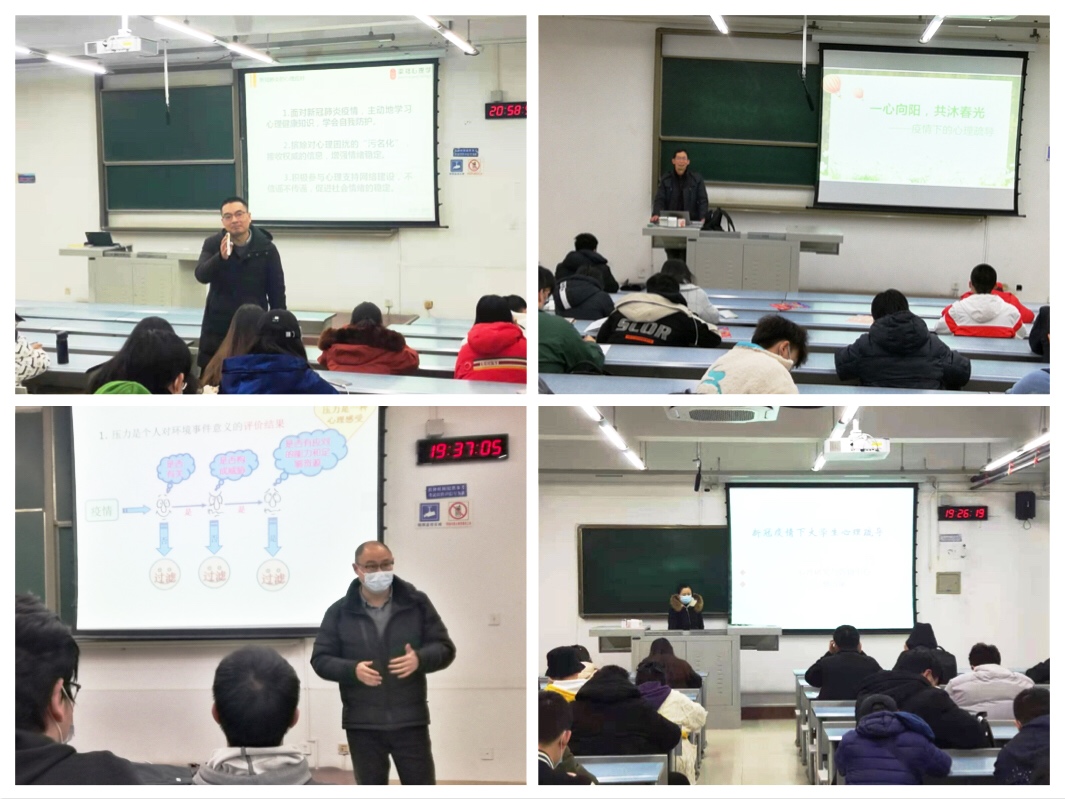 教师通过课堂教授,主要讲解疫情防疫的卫生防护(勤洗手和保持良好的呼吸道卫生习惯、尽量减少到人群密集场所活动、适量运动增强体质和免疫力等)、心理防护(心理应激状态常见的心理与情绪现象、心理疏导的基本方法等)以及心理咨询的功能。也介绍各校区心理咨询室的地点和热线电话。