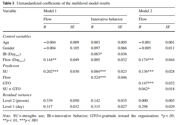 Liu, T., Lu, S., Ma, J., & Mao, Y. (2023). Apply Your Strengths to Enjoy Flow at Work: A Diary Study on the Relationship Between Strengths Use and Innovative Behavior. Journal of Happiness Studies, 24, 2647-2667.