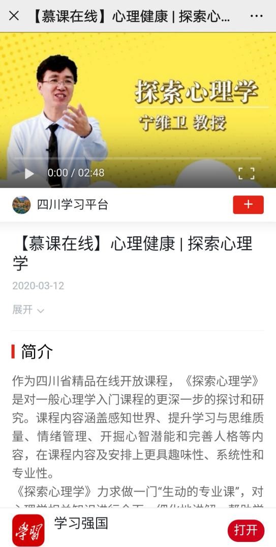 (2)《探索心理学》(四川省精品在线开放课程)