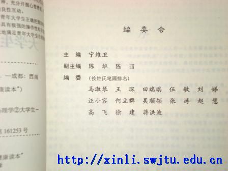20099月由四川省心理健康教育研究会长宁维卫教授为主编,西南交通大学陈华教授、陈丽副教授为副主编的四川省心理健康教育研究会“心理健康教育读本”,教育部哲学社会科学重大课题“大学生心理健康教育理论与实践”研究成果——《大学生发展与健康心理学》正式出版。