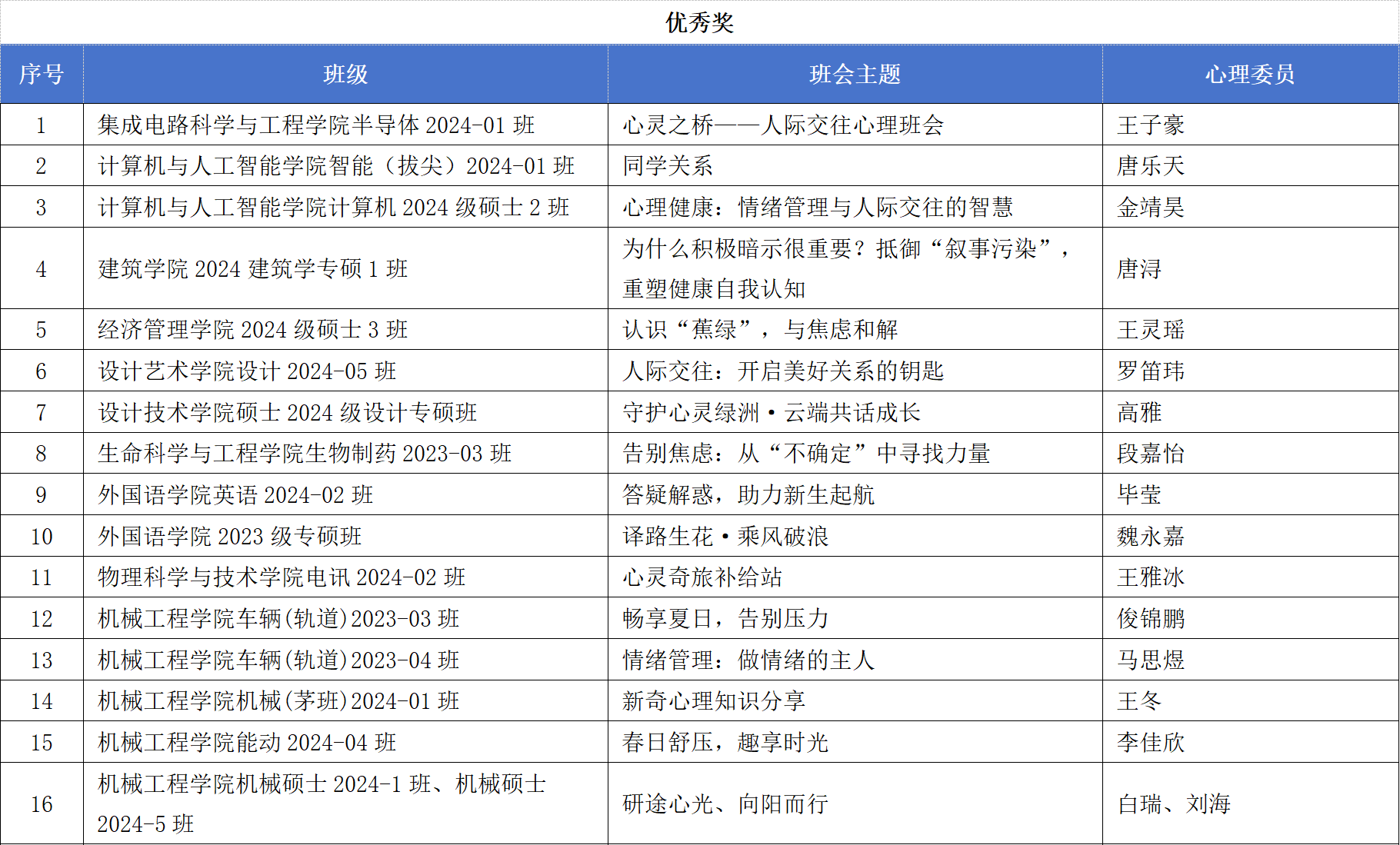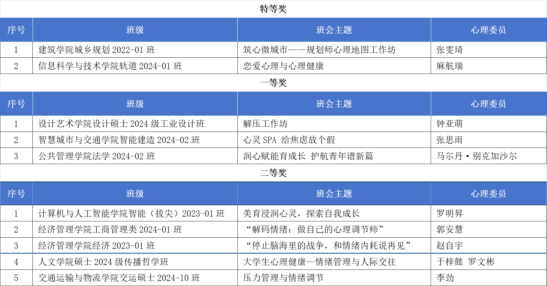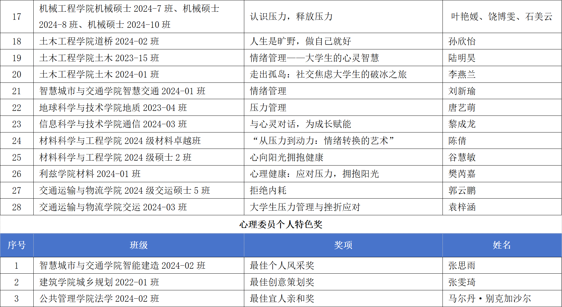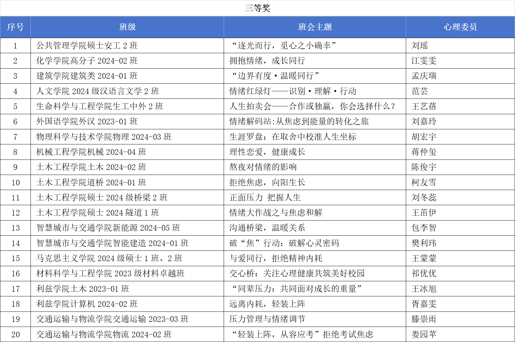 关于公布2025年度西南交通大学“交心桥” 心理班会展示会获奖名单的通知