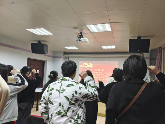在宣布支部表决意见后,由赵海琳书记领誓,带领全体党员重温入党誓词。