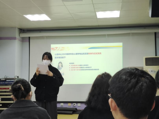2020级研究生心理学专业党支部在X5229召开党员转正大会暨党小组设立讨论会。会议由支部书记赵海琳主持,全体党员参会。
