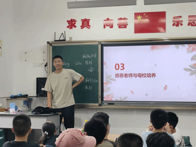 “感恩老师与母校培养”环节中,同学们表达了对母校和老师的感激之情。学校组织的团体活动和弘扬传统美德的教育,培养了同学们的团队合作意识和道德品质。