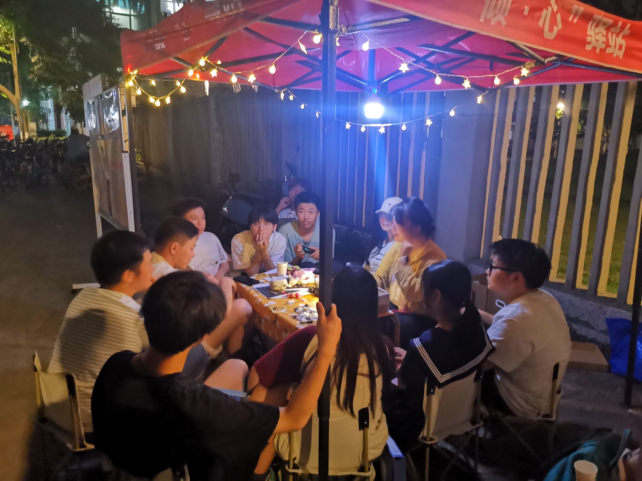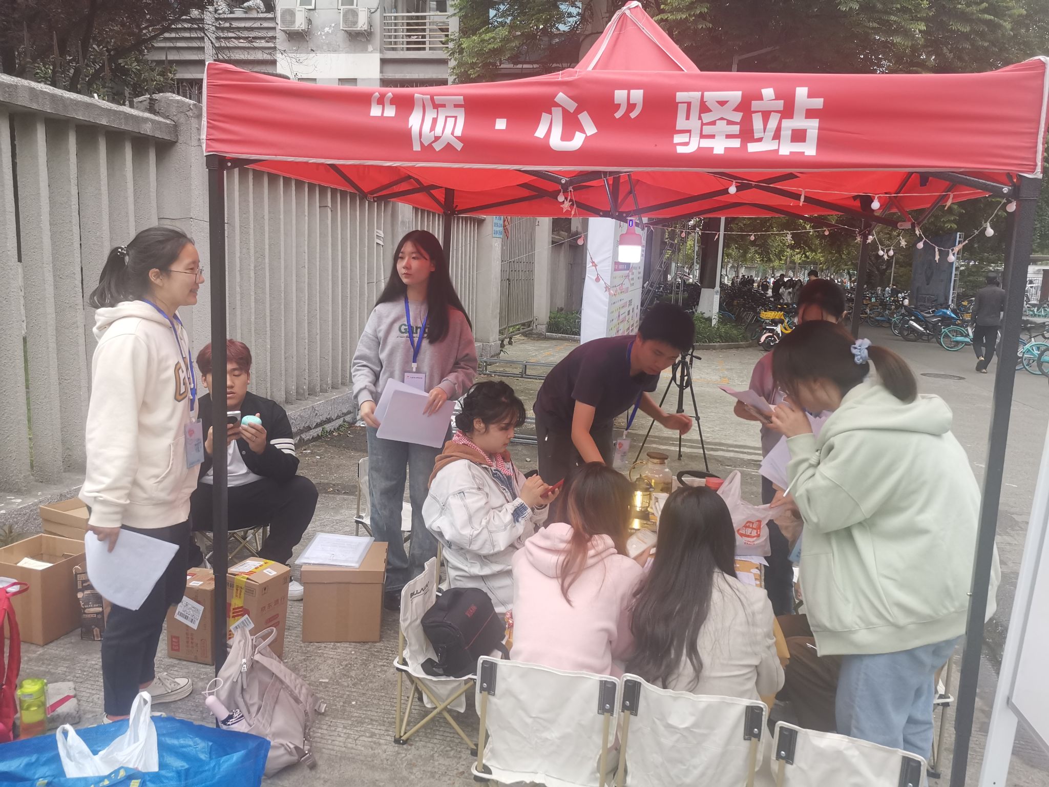 活动现场布置得温馨而富有创意,露营小摊、围炉煮茶等环节为参与者营造了一个轻松愉快的氛围。晓晓同学作为小树洞“洞主”,和其余志愿者一同热情洋溢地欢迎每一位到来的伙伴,积极引导大家分享生活见闻和倾诉心事,并组织一些有意义有趣的小活动调动学生们的正能量,让学生们更积极的面对学习和生活。