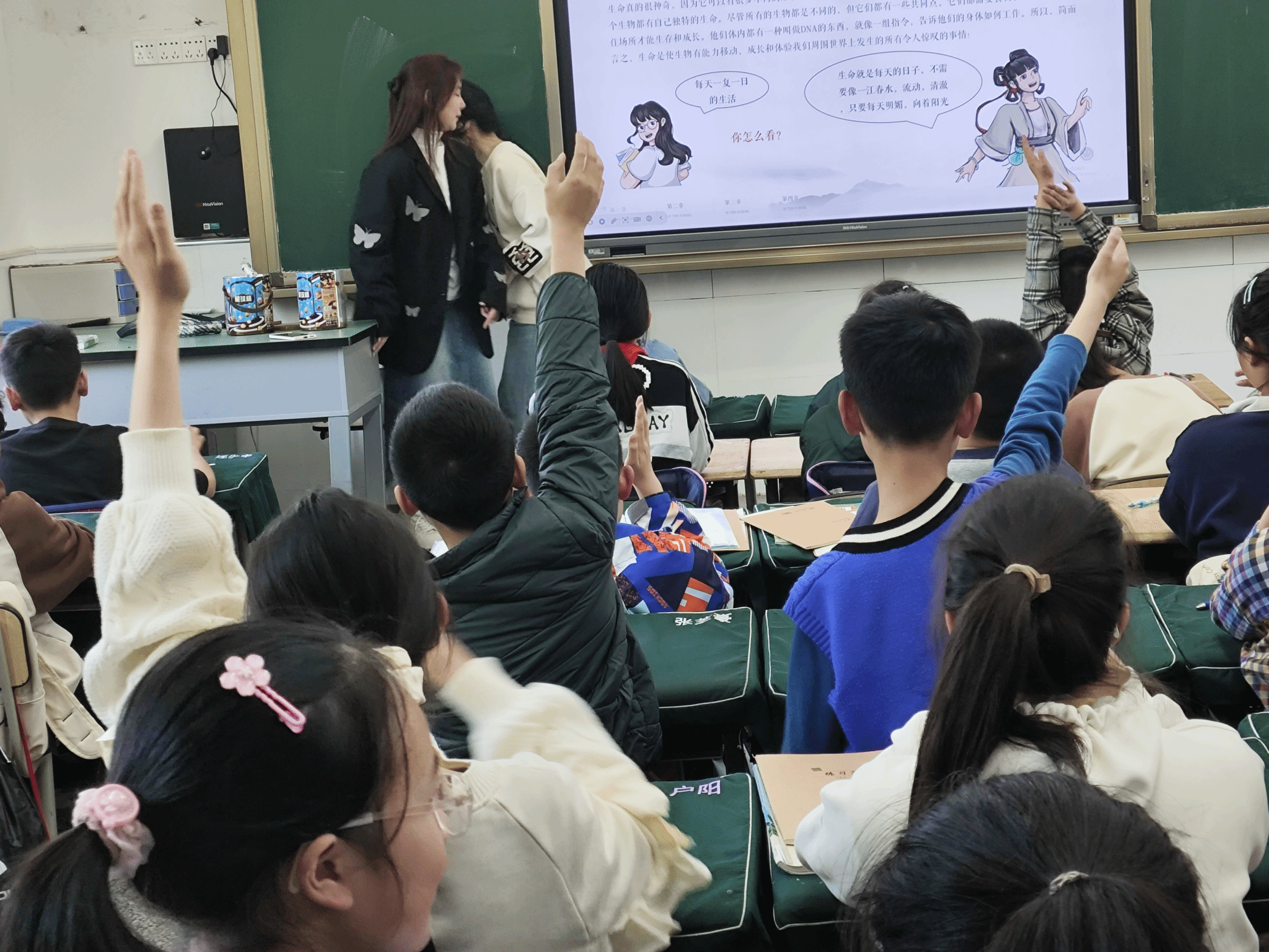 接着给同学们讲述了生命意识,让同学们想想自己是一株植物,去体验感受生命的意识,接着进行有趣的模拟思考,同学们也都积极踊跃地举手发言。