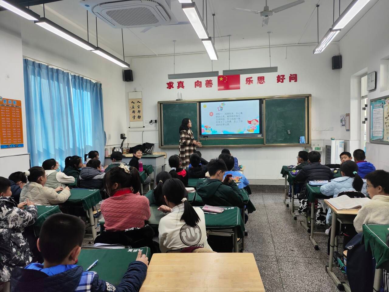 本次课堂开始,老师以一首歌(雾里看花)引入,悠扬的歌声使同学们进入课堂状态。接着以问题互动形式,活跃课堂氛围,调动同学们的积极性和课堂参与度。