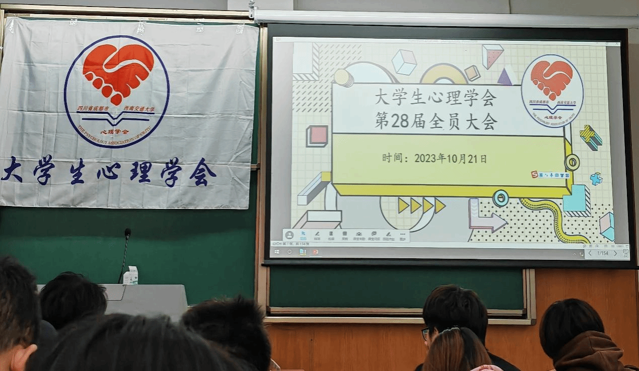 2023年10月21日上午,由大学生心理学会主办的心理学会全员大会在西南交通大学犀浦校区4156教师召开,本次会议的到场嘉宾有:大学生心理学会指导老师马岳德老师、心理青协副会长唐丽娟、心理学生会团支书崔月绒、心传媒主任陈茜、环境协会会长李姝娴、承唐歌友会副会长杨翌平、退役大学生军人协会会长刘誉、大学生创造学会DIY部部长张仕雨、微笑话剧团副团长尹靖宇、大学生心理学会第27届团支书徐睿、大学生心理学会第27届副会长武艺、大学生心理学会第27届副会长张博骞、大学生心理学会九里分会第27届团支书王朝阳。参会人员是心理学会全体成员,主持人是刘帅,廖雨。
