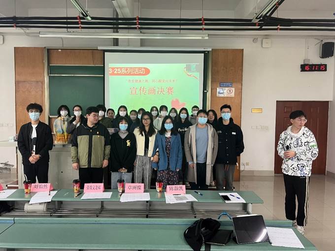在大学生心理学会的组织下,我校第十届3.25宣传画大赛活动顺利展开。4月16号下午,本次活动迎来了最终的决赛。决赛主要分为情景剧观看、3.25相关介绍、最终评选这三个环节。