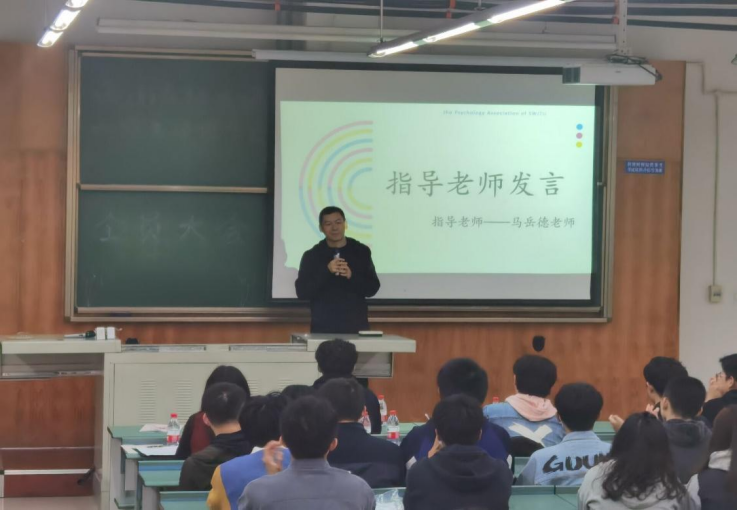 接下来,大学生心理学会指导老师马岳德老师进行讲话。马老师指出,大学生心理学会是一个在校内具有悠久历史,曾取得优异成绩的学生社团组织,大学生心理学会连续多年被校团委校级优秀社团,多次被评为五星社团,曾在2004年和2013年先后两次获得“全国优秀社团”称号,是交大成立早、会员多、影响大的校级优秀社团。经过26年的发展,社团依然生气勃勃。马老师祝愿新一届心理学会成员接过前辈们的接力棒,肩负“使健康者更健康,使心理困或者得到及时帮助”的使命,做好学校心理健康教育的助手,能够延续前辈们的足迹,带领新一届心学人投入心理健康活动实践,在实践锤炼自己、增长才干,不断奋进,再创辉煌。