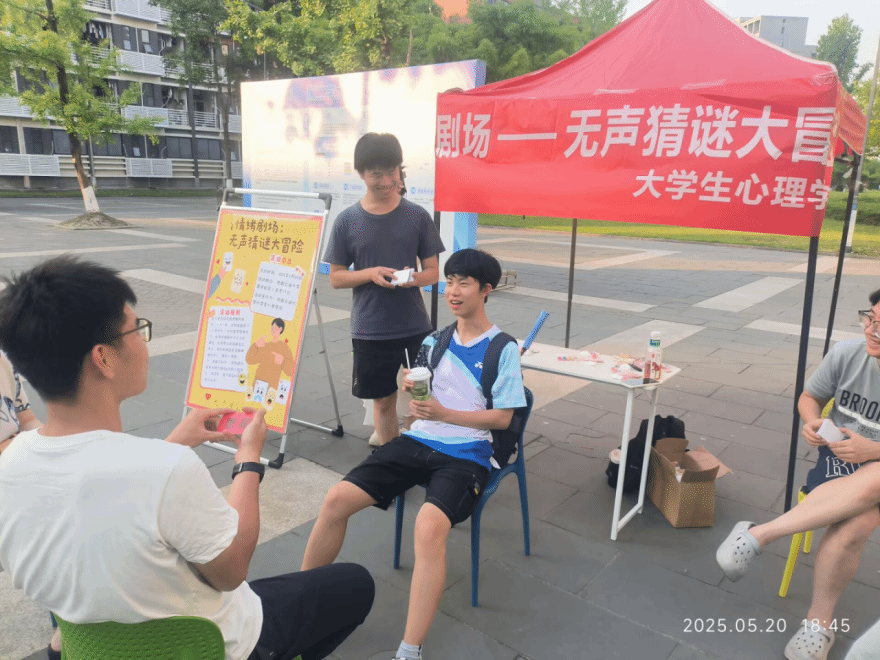 2025 年 5 月 20 日,由西南交通大学大学生心理学会主办的 “情绪剧场:无声猜谜大冒险” 主题活动在犀浦校区二食堂门口顺利开展。此次活动以趣味互动为载体,融合心理学知识,吸引了众多同学踊跃参与,为校园心理健康教育注入了新活力。
