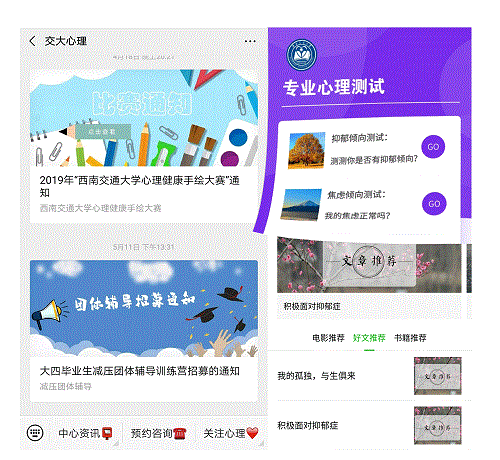 2.心传媒从零开始建立了“交大心理”公众号,并始终坚持做西南交大师生们最值得信赖的心理健康官方服务平台的宗旨,严格把控公众号的推文和各项心理测试,确保其内容的权威性、科学性和合理性。